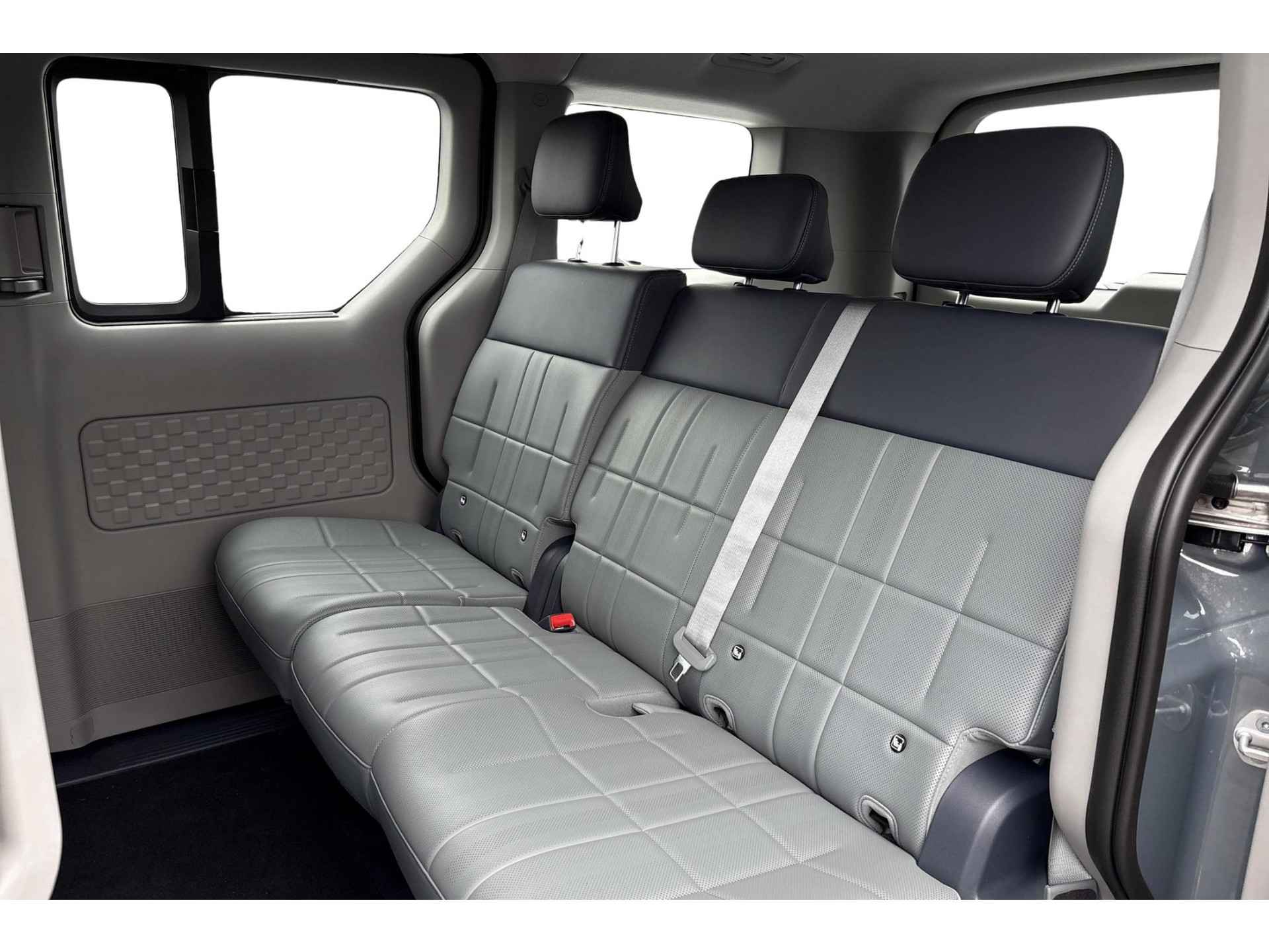 - 3 asymmetrische neerklapbare zitplaatsen achterin in de vorm van een bank naar voren kijkend zonder elektrische verstellingen